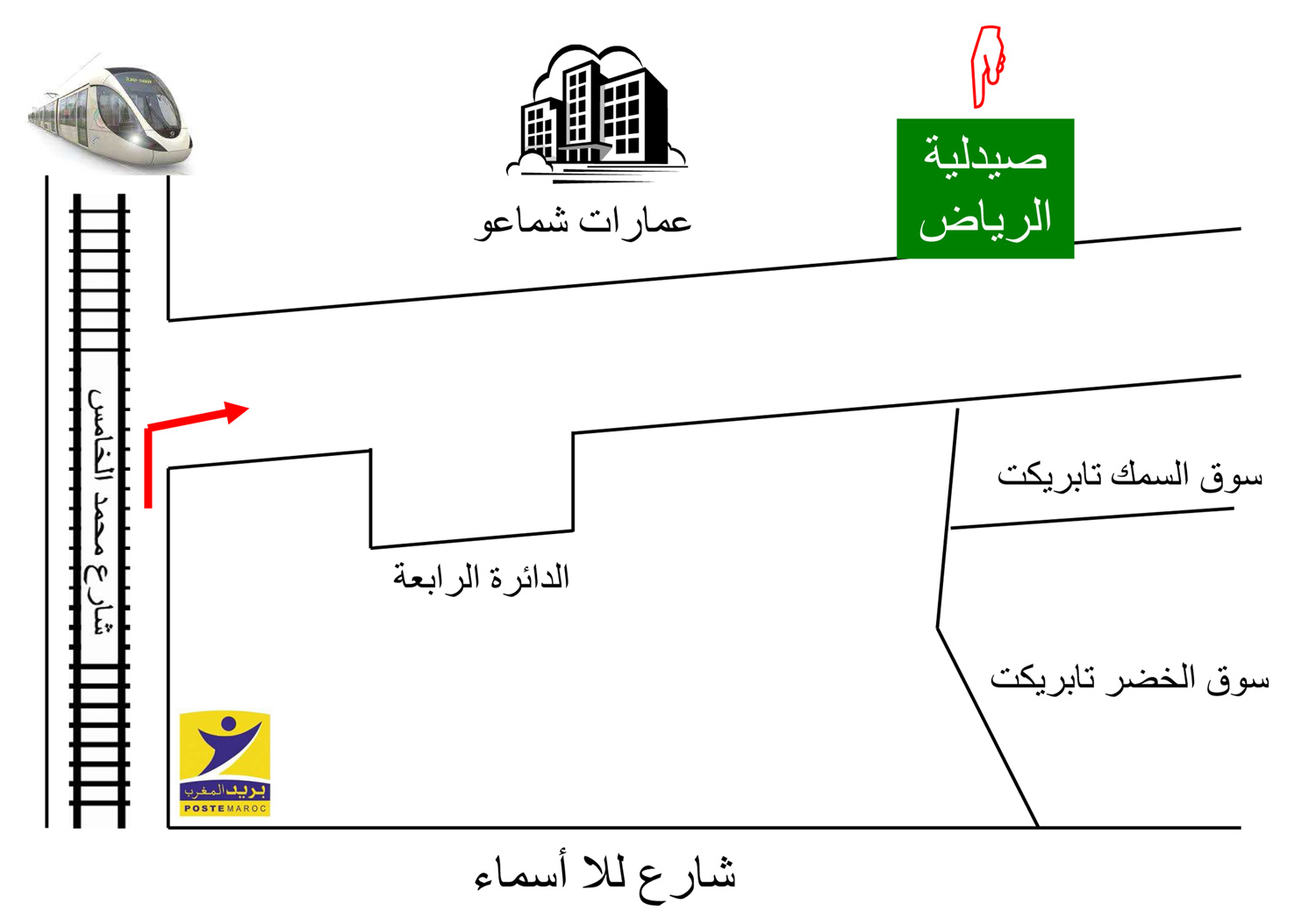 وراء مكتب البريد مقابل سوق السمك تابريكت عمارات شماعو